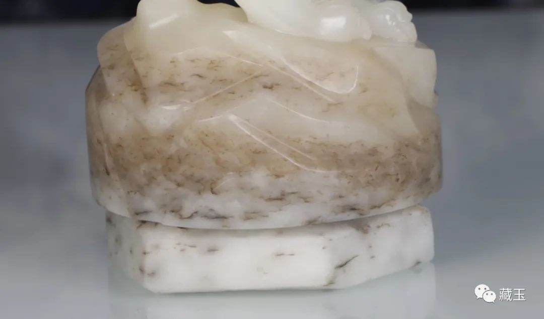 這是一個青海料裡的藕粉料,它的表面也有著很明顯的草花狀,我們也可以稱之為水草沁。