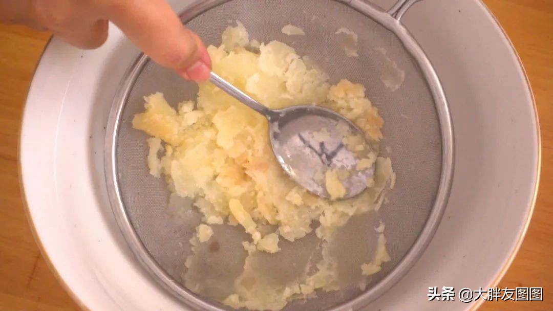 過一次篩,這樣得到的豆泥才是細膩的,純手工碾壓的豆泥多少會帶有顆粒,影響口感。過篩之後的豆泥因為澱粉的作用,會變得有點黏黏的。