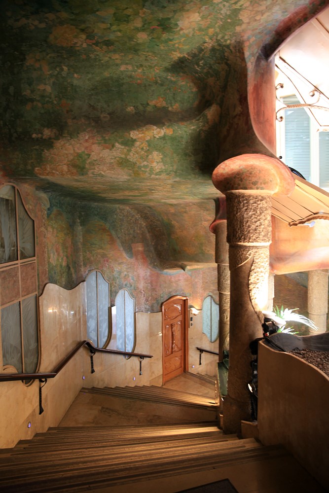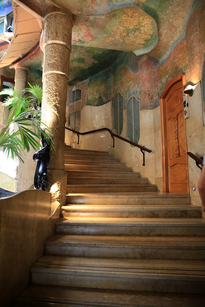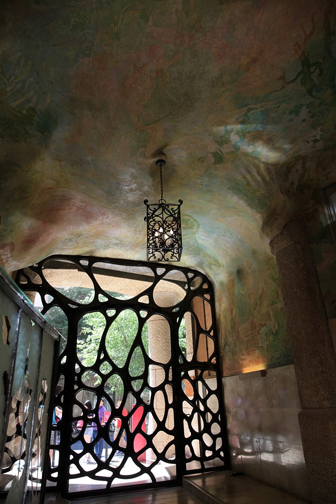 這是汽車進出口,和主人樓梯一起,朦朧迷離的天頂彩繪特別美麗,這些都是高迪時代的原作