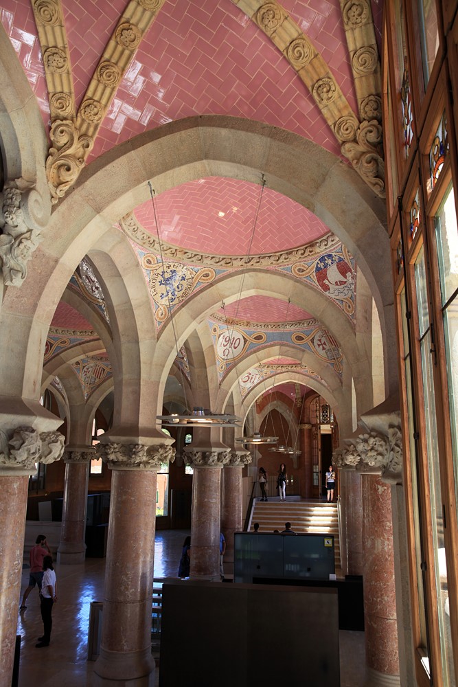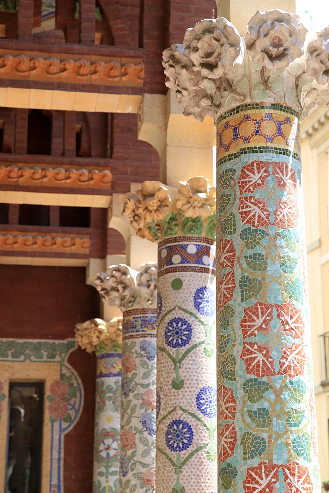 這個柱廳是給小區裡的人們休閒、聚會的,柱頭都是瓷片貼面裝飾。在炎熱的巴塞羅那,有這麼一個涼爽、安靜的地方喝茶八卦,還是很舒服的。現在不行了,隔壁就是一個小學