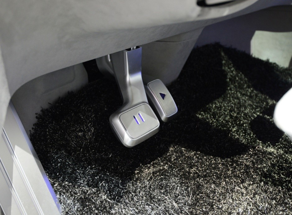 內飾部分,來到車內,你會發現整車給人的感覺很簡潔,完全不像是一輛車,整個中控設計很平整,和外觀一樣是閉合式的設計,上面沒有多餘的實體按鍵,方向盤也是跑車方向盤設計,上面配備了螢幕,一些功能可以透過觸屏來操作。新車並沒有配備中控屏,卻內建了投影,中控臺開啟後,可以展開一34英寸的大螢幕,內建了遊戲主機,娛樂設施很齊全。由於配備簡潔,車子內部空間很大,後備箱容積高達225升,底部還有108升空間用來儲物,後排座椅可以放倒,儲物空間就擴充到了1285升。