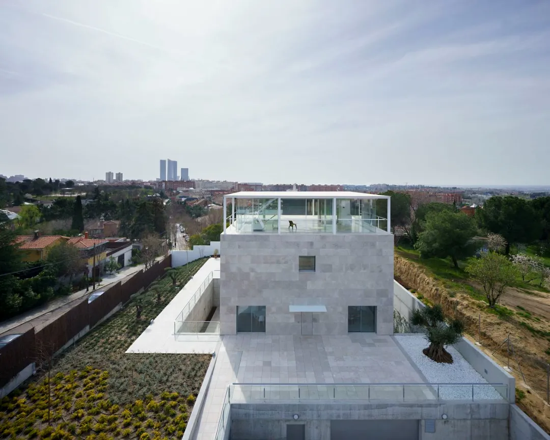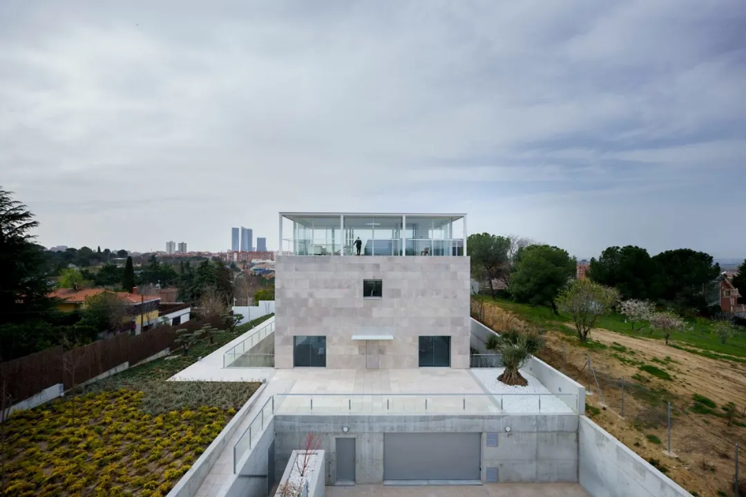“圓廳”之家是一個位於馬德里北部小山頂端的屋宇,它以遠處的山脈為背景,主人名為安娜。阿爾貝託·坎波·巴埃薩建築事務所(Alberto Campo Baeza)再次嘗試打造出了世界上最溫馨的家。為了捕捉山頂別墅周邊360度的全景景觀,建築師在建築頂部設定了一個觀景臺,以此讓住戶能夠體驗到西方傳說中隱居山林間的“七重天堂(seventh heaven)”。