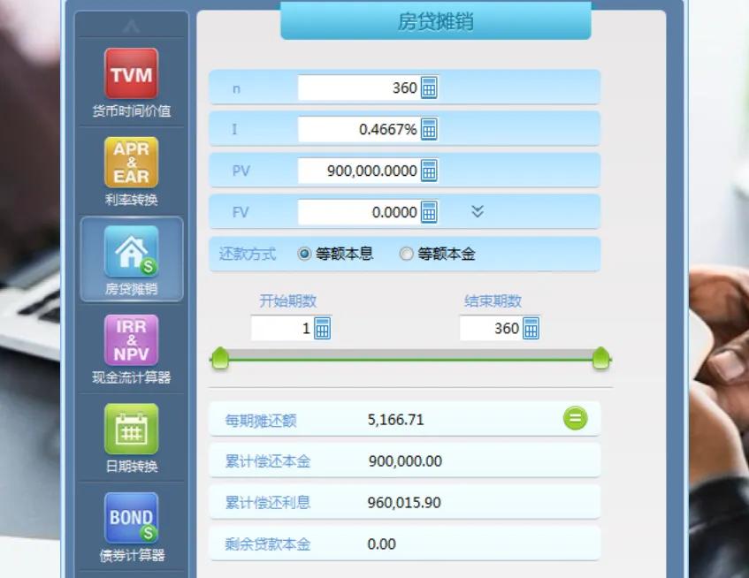 每月還款金額為5166.71元,30年共還利息960015.9元,對於普通工薪階層,每月5167元的還款額,壓力不算小。