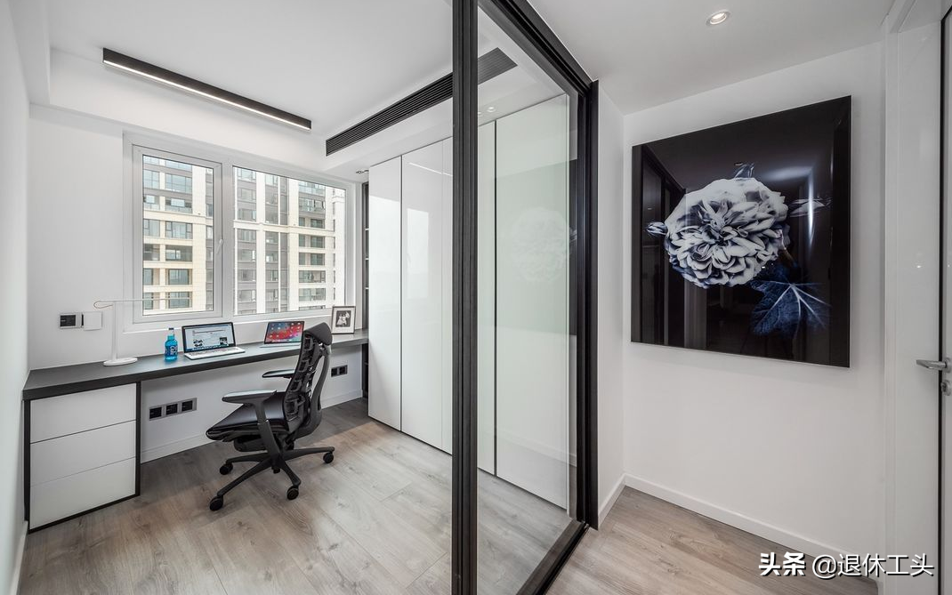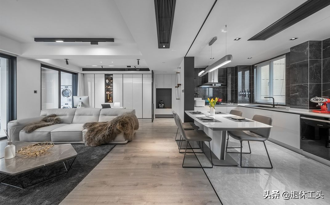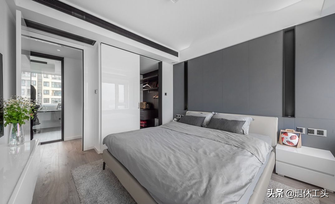 本套房子打破原有的白色空間,裡面新增灰色加以調色,頓時讓空間變得寧靜而又典雅,不再有當初的寒冷,讓空間更加有氣氛。如果您家也需要色彩上的改變,不妨也新增一些灰色在裡面,讓空間做到寧靜而舒適。