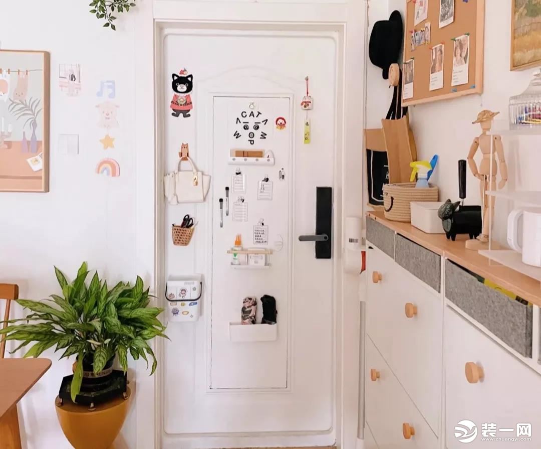 而臥室門後則可以用來做隔夜衣收納。根據門縫寬度可以選擇掛鉤組合或是洞洞板。充分利用門後空間,裝飾性也不錯。