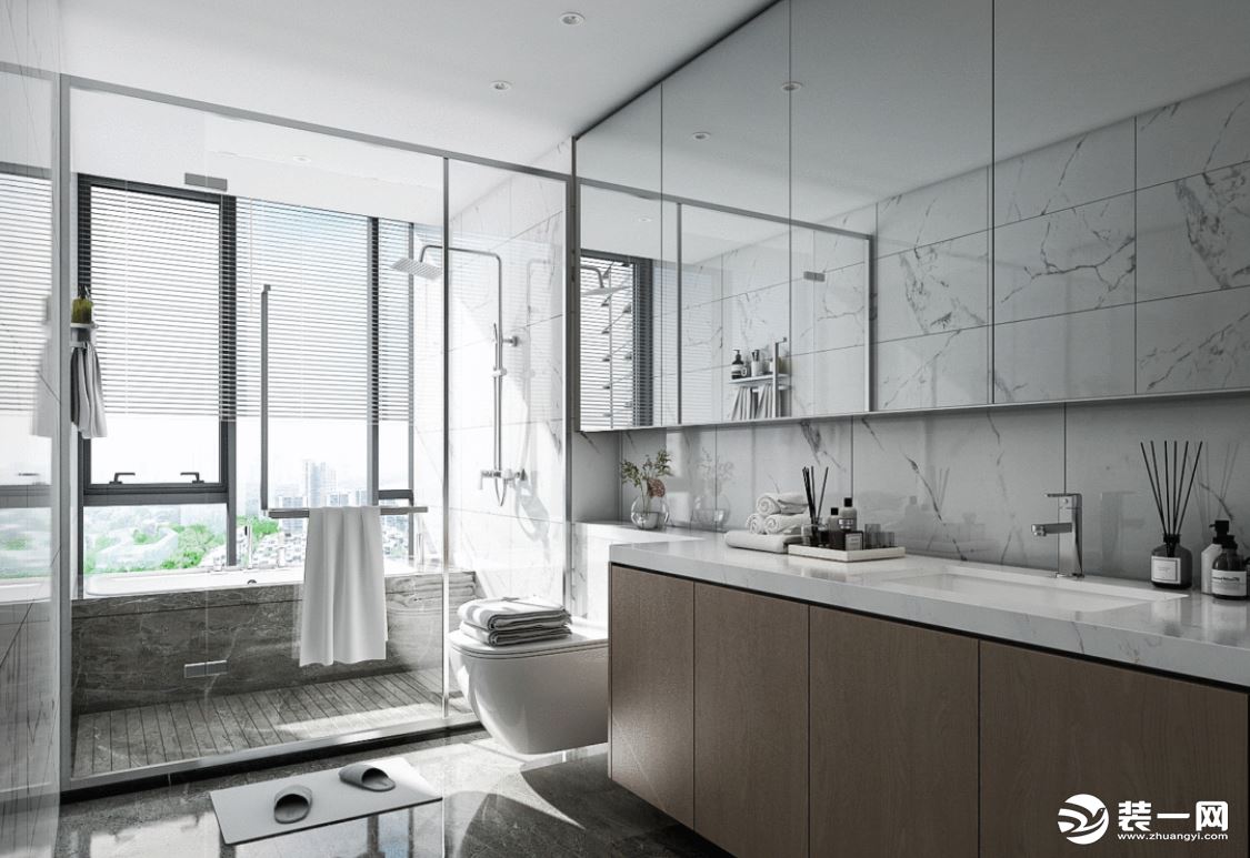 對於家裡是馬桶和盥洗池並排放置來說,不妨將鏡櫃延伸到馬桶上方,既可以增加收納,又能讓視覺有延伸感,讓衛生間看起來更為明亮、寬敞。
