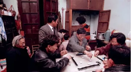有些大人搓著麻將,有些小孩在瘋玩,玩到累得不行,就迷迷糊糊地睡著了。