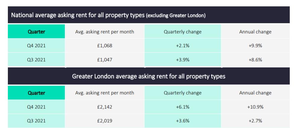 Zoopla的最新資料顯示,2021年第四季度,英國租金同比上漲8.3%,達到了每月969英鎊的新高。