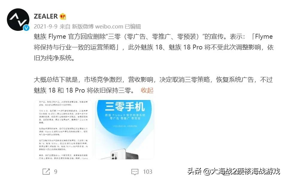 至少如今的魅族,肯定是做不到的。僅僅過了半年,魅族就做出了“艱難的決定”,魅族官博刪除了有關“三零手機”的相關內容,官網中的 Flyme 9 與魅族 18 系列產品描述,也尋不到“三零手機”相關內容。