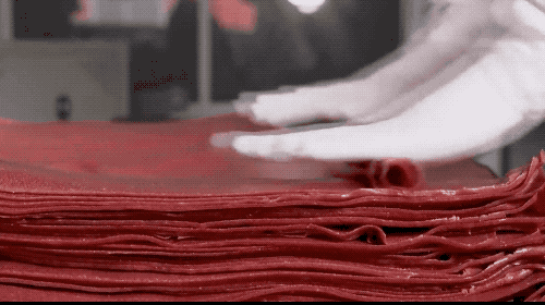 山楂片/果丹皮的主要原料是山楂和白砂糖,也有些廠子會加蘋果啊、香精色素啥的~先將山楂在糖漿中煮軟。