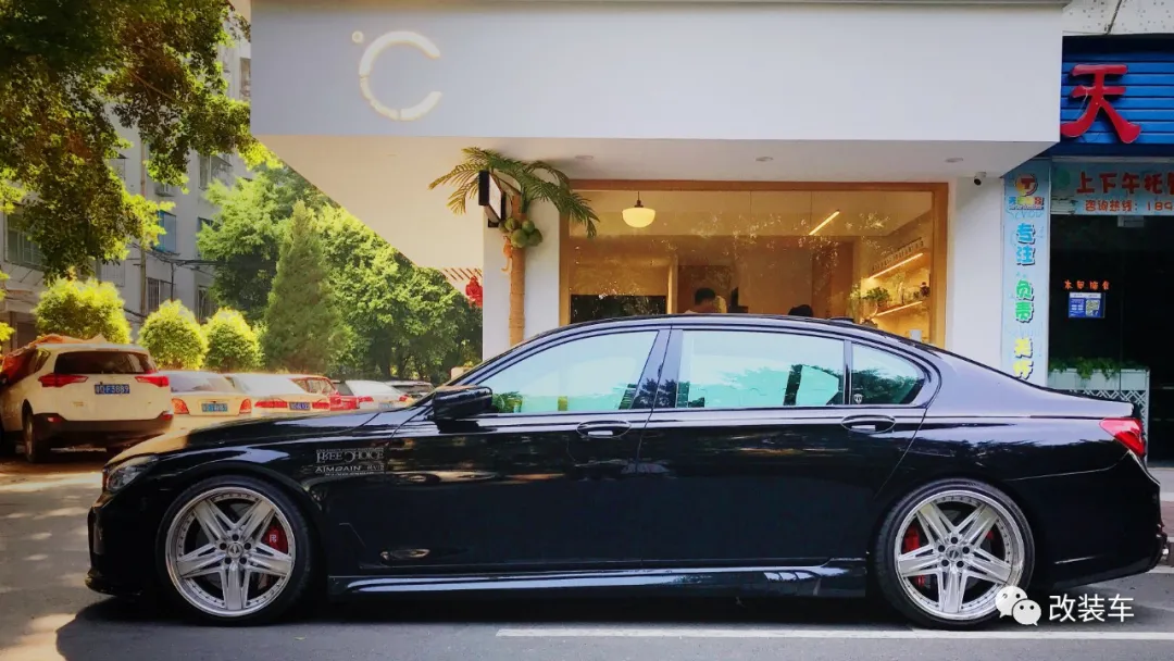 同時寶馬7系還更換了新鞋子,是一套21寸的Aimgain G-Luxe三片鍛造輪圈。Aimgain也很擅長打造豪華外觀,不過沒想到的是搭配德系車有出奇效果,五幅鏤空造型配上大拋邊,成了界總的最愛。