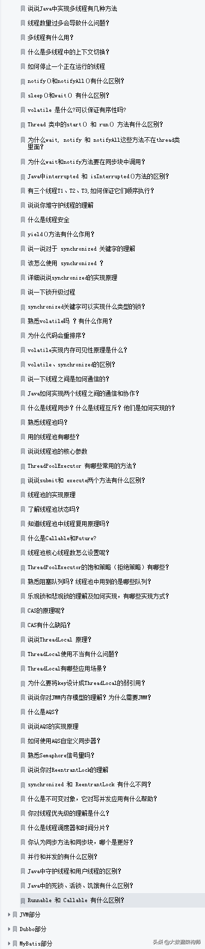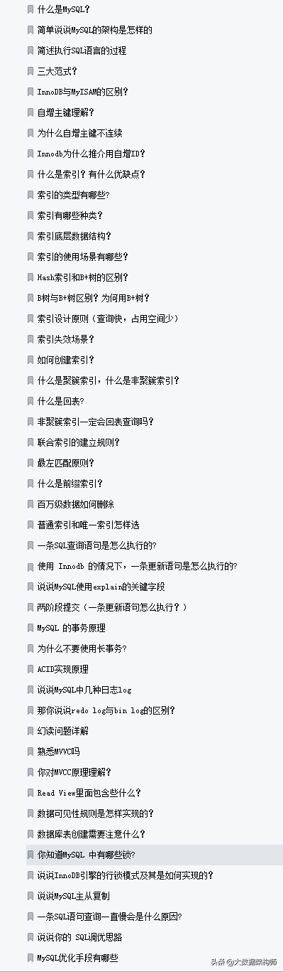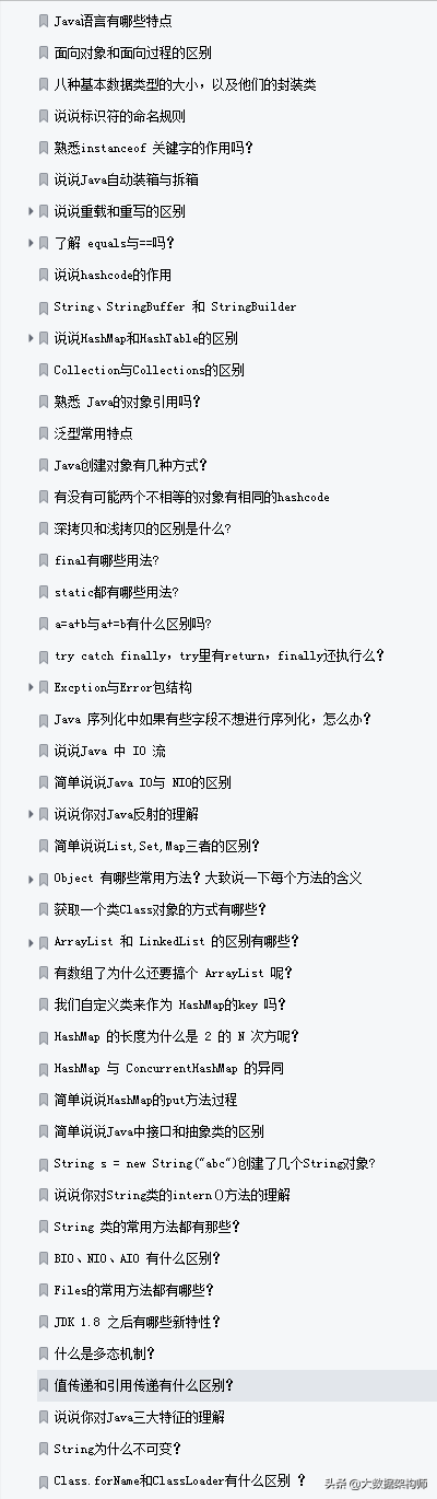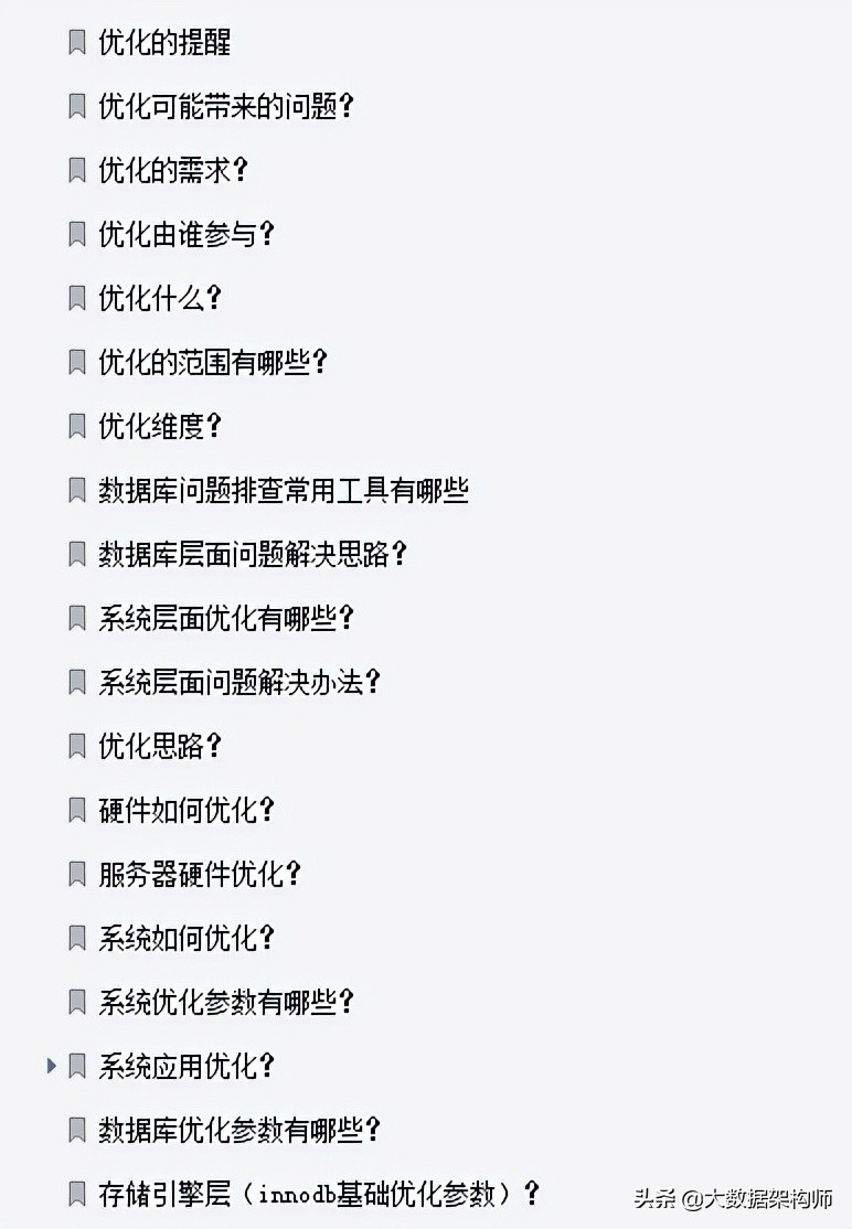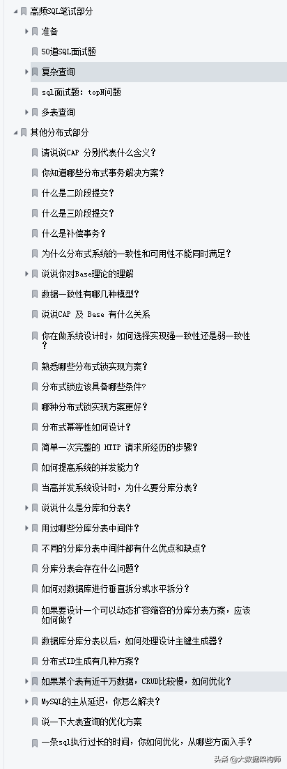 上面已經把筆記介紹完畢,接下來就把整個文件目錄擷取下來,讓各位參考。這份完整版PDF文件已經打包好,有需要的朋友可以轉發此文後私信@大資料架構師關鍵字【666】憑截圖即可免費獲取;