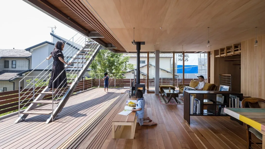 就像“放在砧板上的配菜”,主要的生活空間被翻轉了,與傳統建築相反。這些“砧板”既可以用作屋頂,也可以用作容納生活空間的平臺。建築師詳細說明:“在這間由浮板組成的房子上找到了一個家,就像只有建築外殼才有室內一樣。"