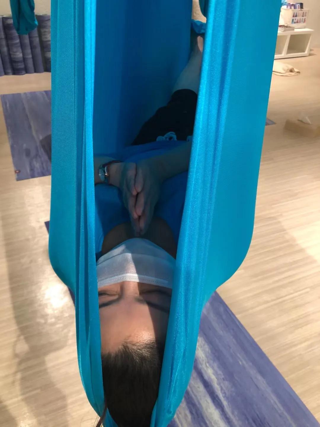 挑戰第一個所欲就是空中瑜伽。這是我向往已久但沒有勇氣涉入的領域。