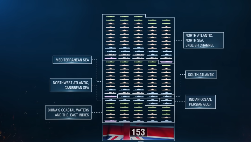 在戰爭爆發初期,英國皇家海軍擁有各型別戰艦328艘,由於其海外領土過於龐大,所以他的艦隊被分派在世界各地,並且為戰爭做好了準備。