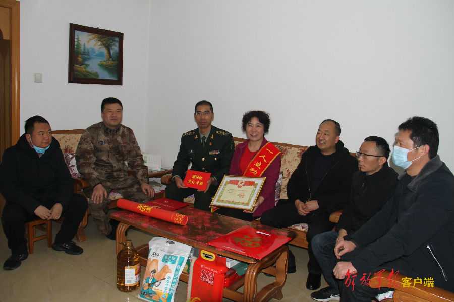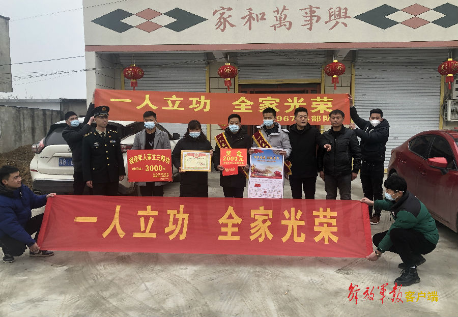 1月25日,正值農曆小年,安徽省蒙城縣人武部、縣退役軍人事務局與火箭軍某部官兵一行,來到蒙城縣籬笆鎮的現役軍人孫狄家中,將三等功的立功喜報和慰問金送到軍屬手中,並向他們表示祝賀。(作者:鬱清)