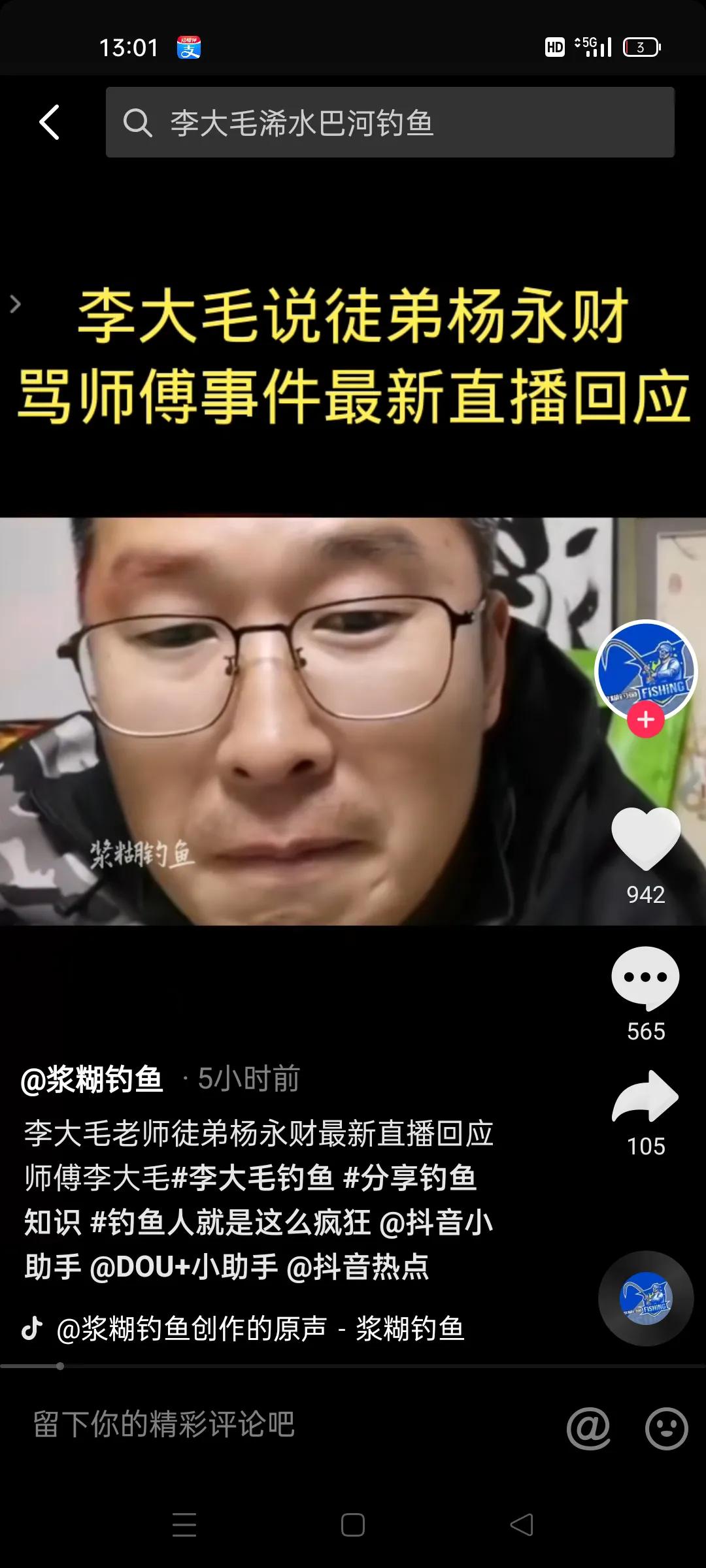可是事實上,抄魚俠並未迴歸家庭,自己搞了個影片號,拍釣魚影片,準備分享釣魚影片這個可以盈利的大蛋糕。