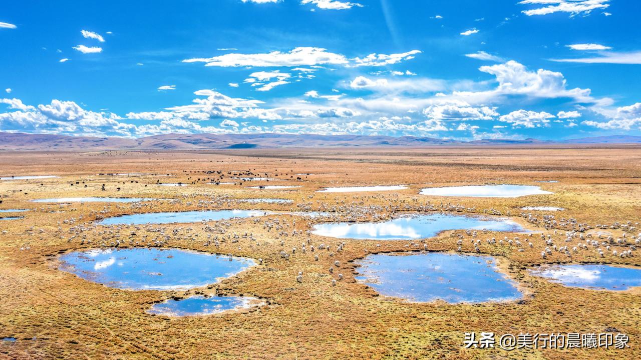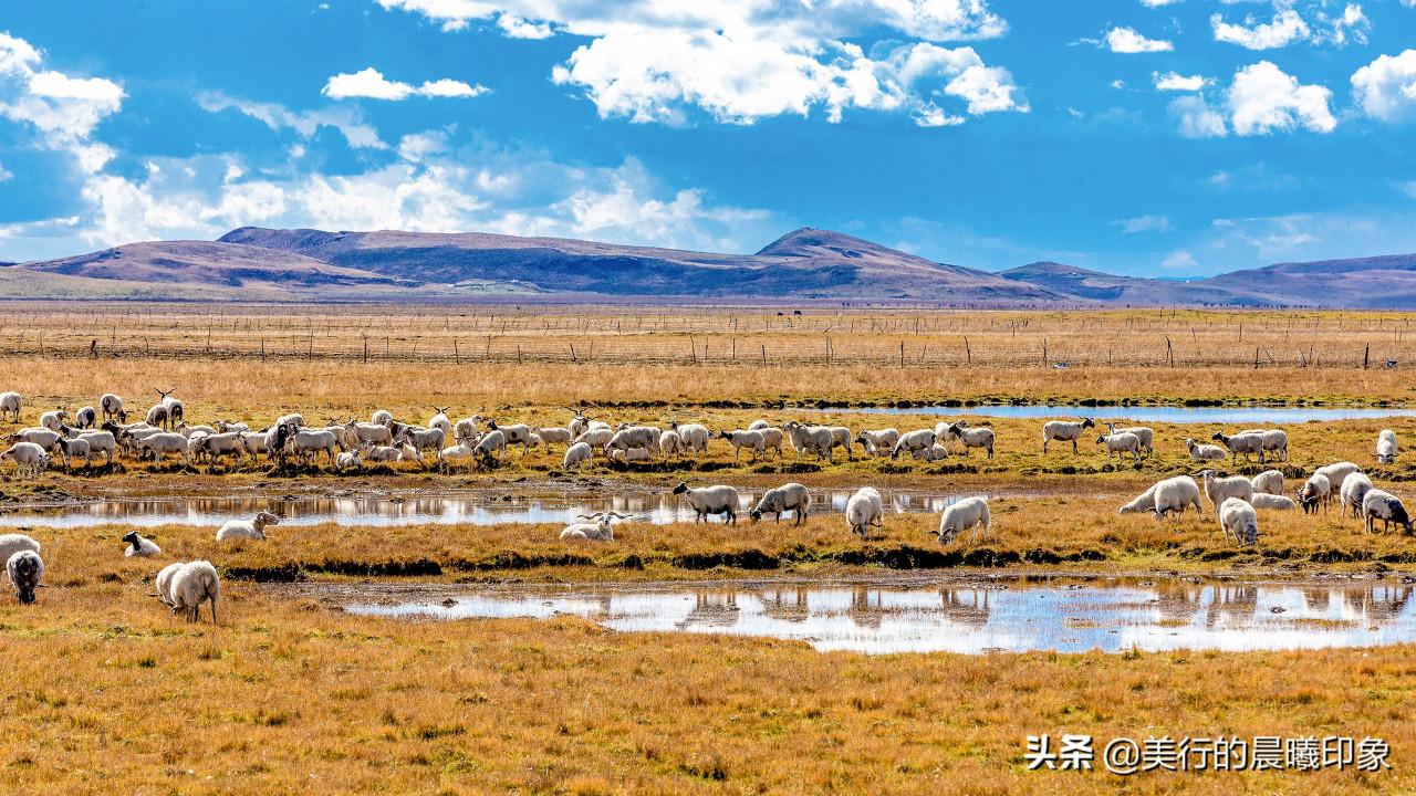 若爾蓋草原水資源豐沛,光熱條件好,水草豐茂是全國三大草原牧區之一,也是亞洲最好的天然牧場之一。大大小小的湖泊,純淨的藍天,高原的陽光,悠閒吃草的牛羊,地平線盡頭的群山,一切都那樣安靜、和諧。置身其中,人變得如此渺小,彷彿天地間的一顆塵埃。