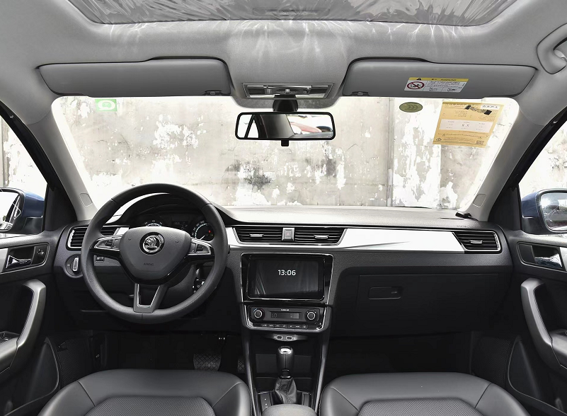 2022款斯柯達昕銳的內飾同樣延續了舊款車型的設計佈局,車內的質感是做得很一般的,車內配備了三輻式的多功能方向盤、機械指標+液晶屏的儀表盤和內嵌式的中控屏,科技感也是做得比較一般的。中控臺使用上了大面積的鍍鉻飾板進行裝飾,搭配上縫線工藝,看起來會精緻一些,但設計感和檔次感還是有待提升的。