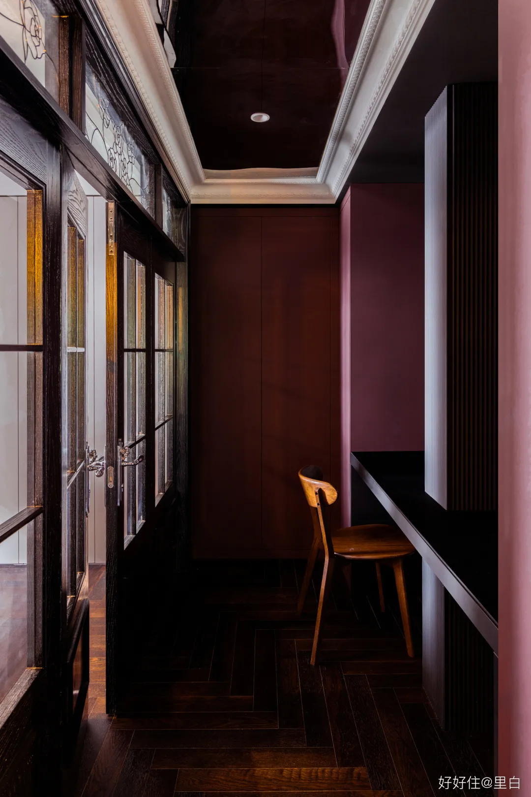 推開裡面這扇黑色雙開門,才是真正進入了家的空間。