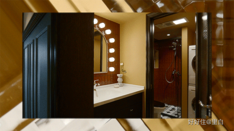 還是熟悉的紅黃藍色調,光線偏暗,一圈堪比專業化妝間的 Led 燈泡,方便女主人在這梳妝。