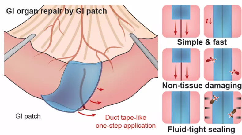 全球每年有數百萬次修復胃腸道缺陷的手術,臨床上常用的修補手段是手術縫合,不僅耗時操作複雜,容易造成組織損傷,且易發生二次洩露,手術後患者的滲漏率高達 20%,造成各種嚴重的術後併發症,包括感染、壞死甚至死亡。