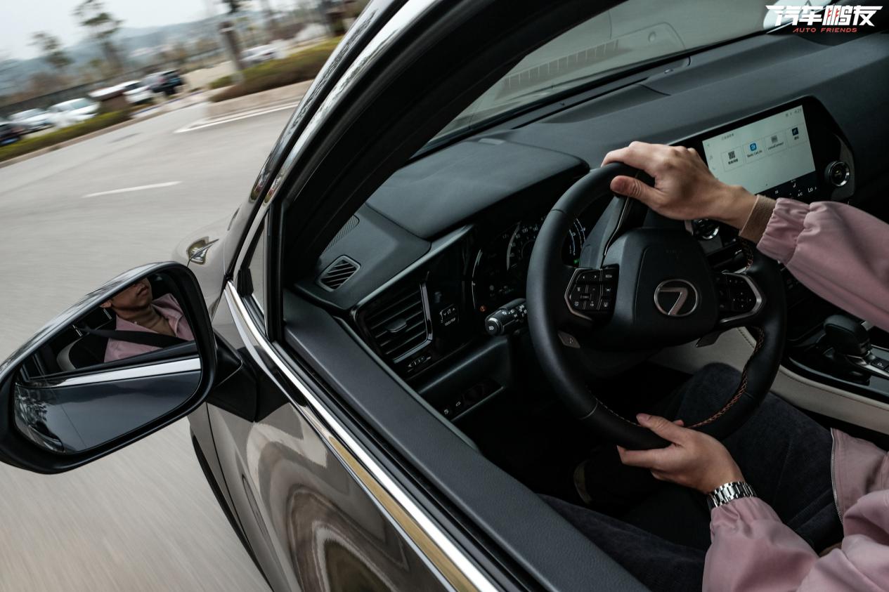轉向和底盤注重線性的調校,筆者比較喜歡Sport模式下的轉向阻尼設定,反饋略“重手”一丟丟,但隨速隨角度的增益又很潤。而且這套轉向系統不算多麼運動,也沒太多人車溝通感,但真就感覺收放自如,開起來很可控。