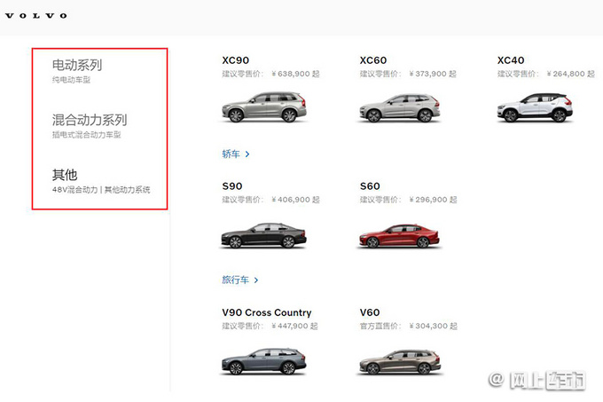 2021年,沃爾沃在華銷量為171,393輛,同比增長3.1%,其中沃爾沃XC60全年銷售超過6.5萬輛。目前,沃爾沃在售車型分別以“XC”開頭的SUV序列、以“S”開頭的轎車序列以及以“V”開頭的旅行車序列。同時,除了傳統燃油版外,沃爾沃還提供插電式混合動力和純電動系列車型,官方售價最低26.48萬元起,最高89.49萬元起。