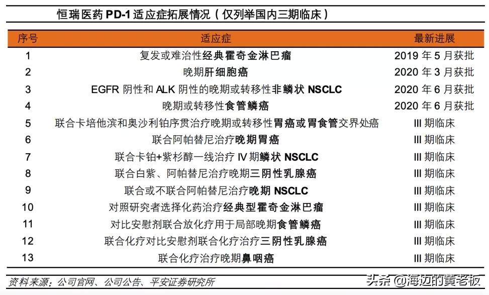 目前公司的海外管線已經從仿製藥向創新藥轉變升級,,卡瑞利珠單抗+阿帕替尼治療晚期肝細胞癌,吡咯替尼治療 HER2+晚期 NSCLC,SHR3680治療前列腺癌等均在海外進入到Ⅲ期臨床階段。
