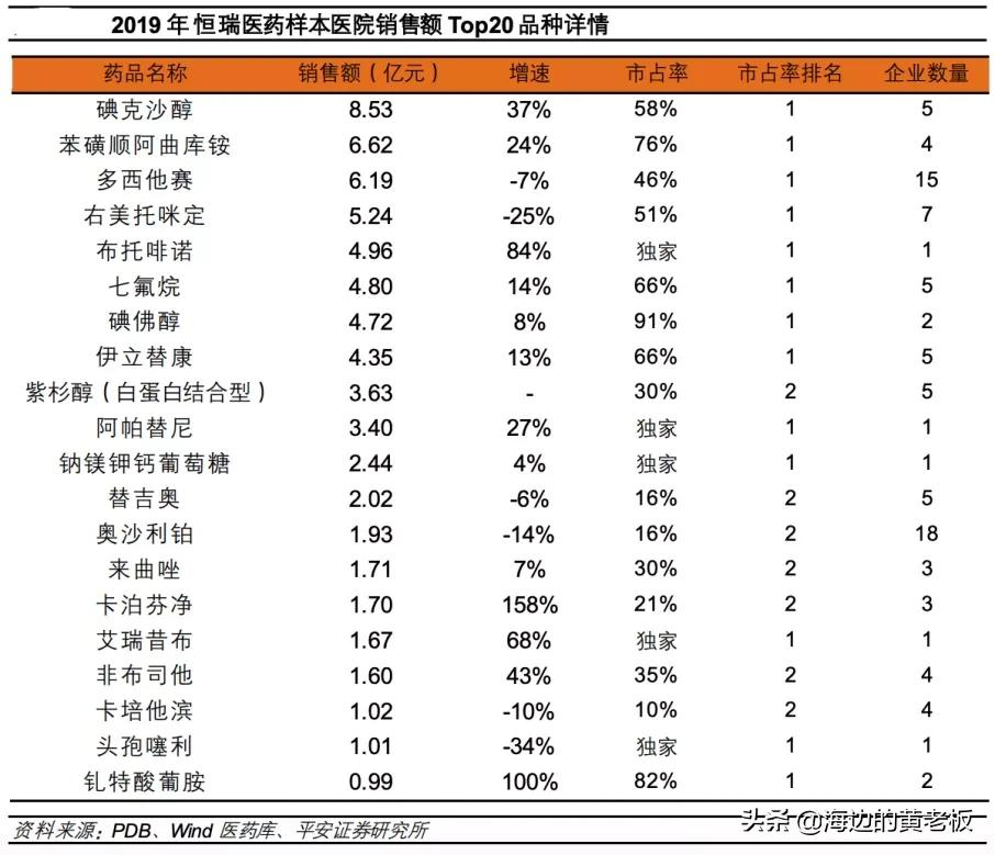 2019年,恆瑞在全球腫瘤銷售排名中在第12位。