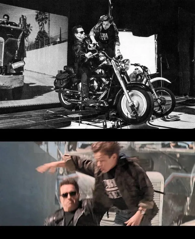 這是一組十分危險的拍攝場景,所以導演採用了背投的方式,比如說下面這一段。