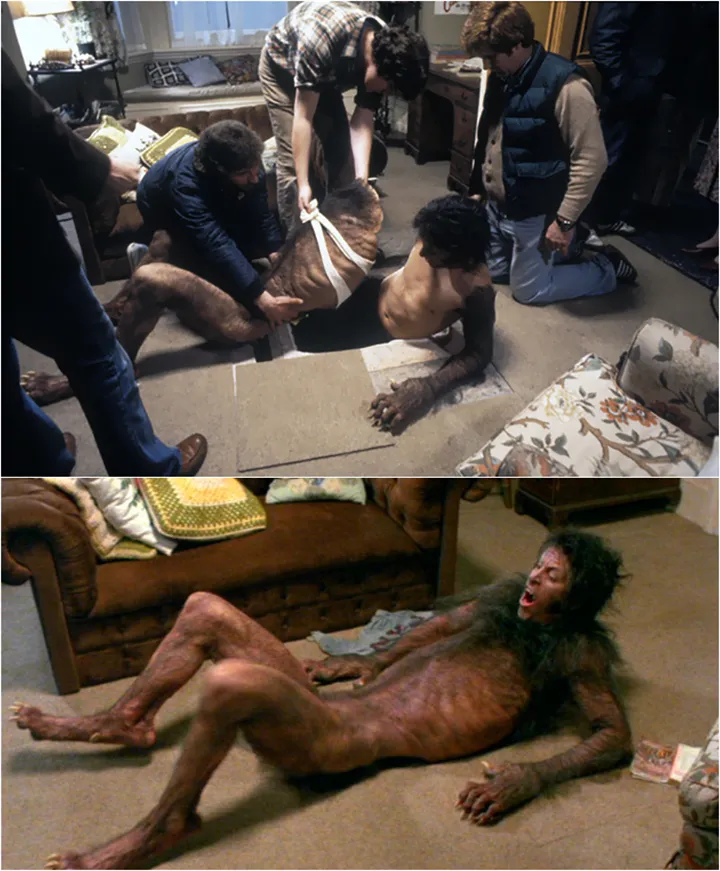 電影中狼人變身的過程,這些驚人的場景都是靠道具來實現的。