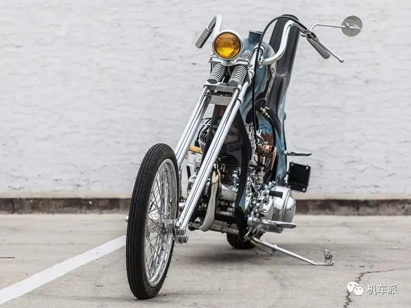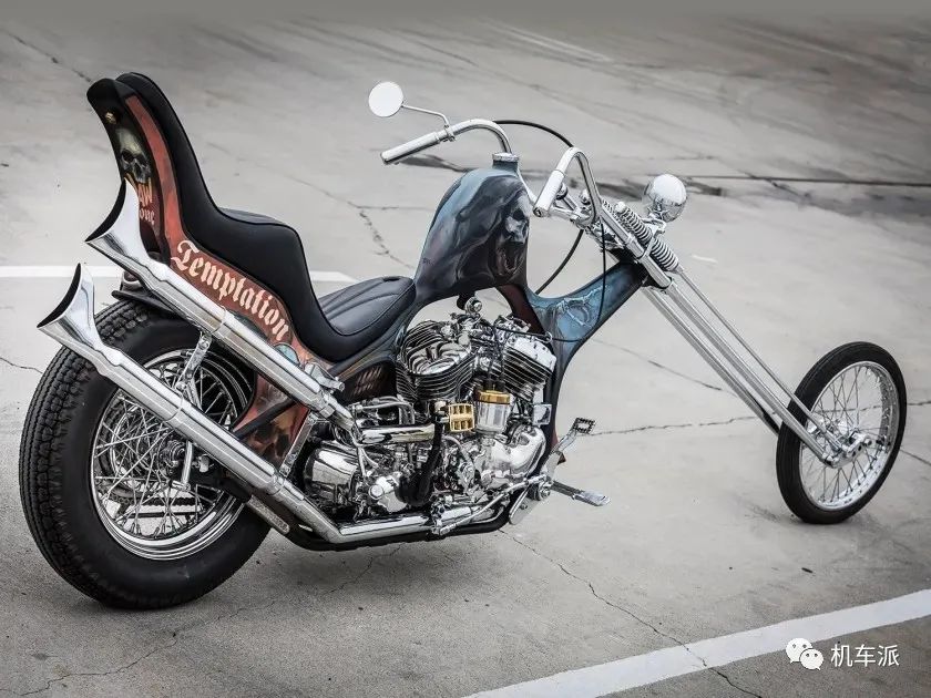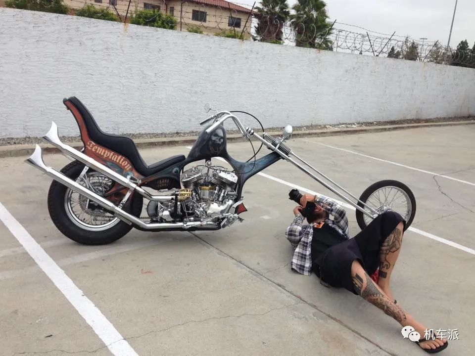 這是來自美國的Hog Killers定製公司的Aki Sakamoto在2014年打造的作品該車搭載了一臺哈雷 ULH1340cc引擎,創始人Aki是一位日本人從小就鍾愛哈雷機車,95年前往美國專修摩托車機械工程,畢業回到家鄉以後也一直在摩托車行業內工作,返回美國後又在West Coast Choppers的Jesse James那裡做為學徒工作學習多年,於2009年創辦了屬於自己的Hog Killers公司,Aki憑藉獨特的設計理念並在細節工藝和油漆塗裝上贏得了業內的好評,他的作品辨識度相當高。