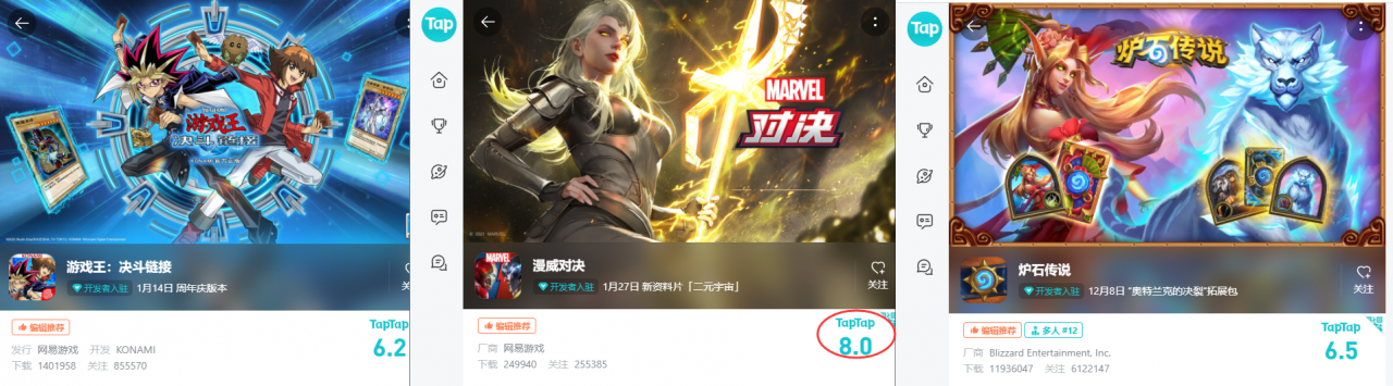 正因為這款遊戲擁有如此精良的畫面表現力,這款遊戲成為了TapTap競技卡牌遊戲中唯一評分上了8分的遊戲,比“大老哥”爐石和老前輩“遊戲王”更受大家的喜愛。