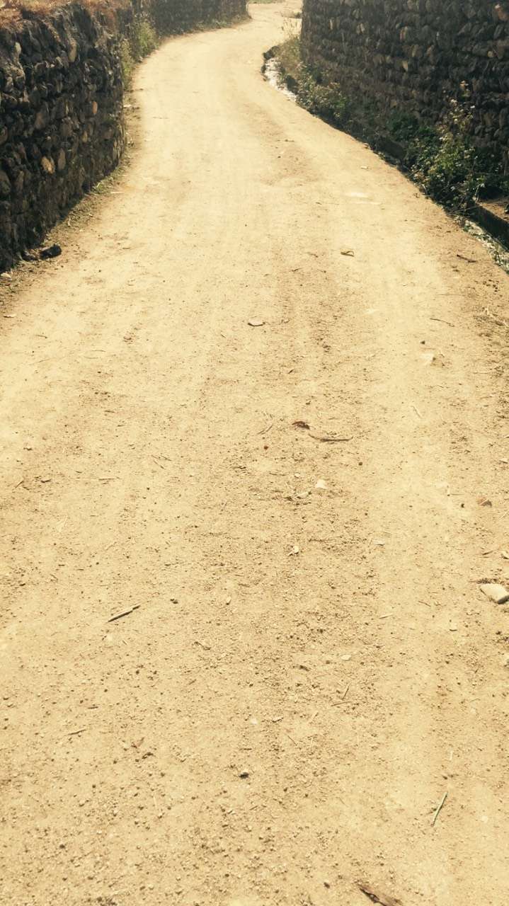 好了,下一個不錯的活動來了,挖冬筍。沿著這條黃土路,走一段時間,就可以看到竹林了。