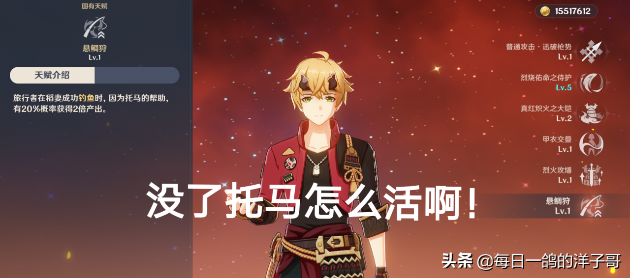 在原神釣魚系統剛剛出來的時候,我其實對漁獲沒有很大的好感,原因便是拿漁獲的過程過於艱辛,不想太肝!但是為何現在我突然對漁獲有了興趣?這還是因為我最近太缺原石拿自己想要的UP角色了!不僅把淵下宮還把雷神附近的島嶼寶箱全開了一遍!但是還是不夠,於是我便把目光伸向了深淵秘境。但是沒有練度的自己根本沒得玩,於是我只能逐步提升武器以及角色強度,而現在對於平民玩家最為友好的便是魔王武裝以及雷神國家隊!