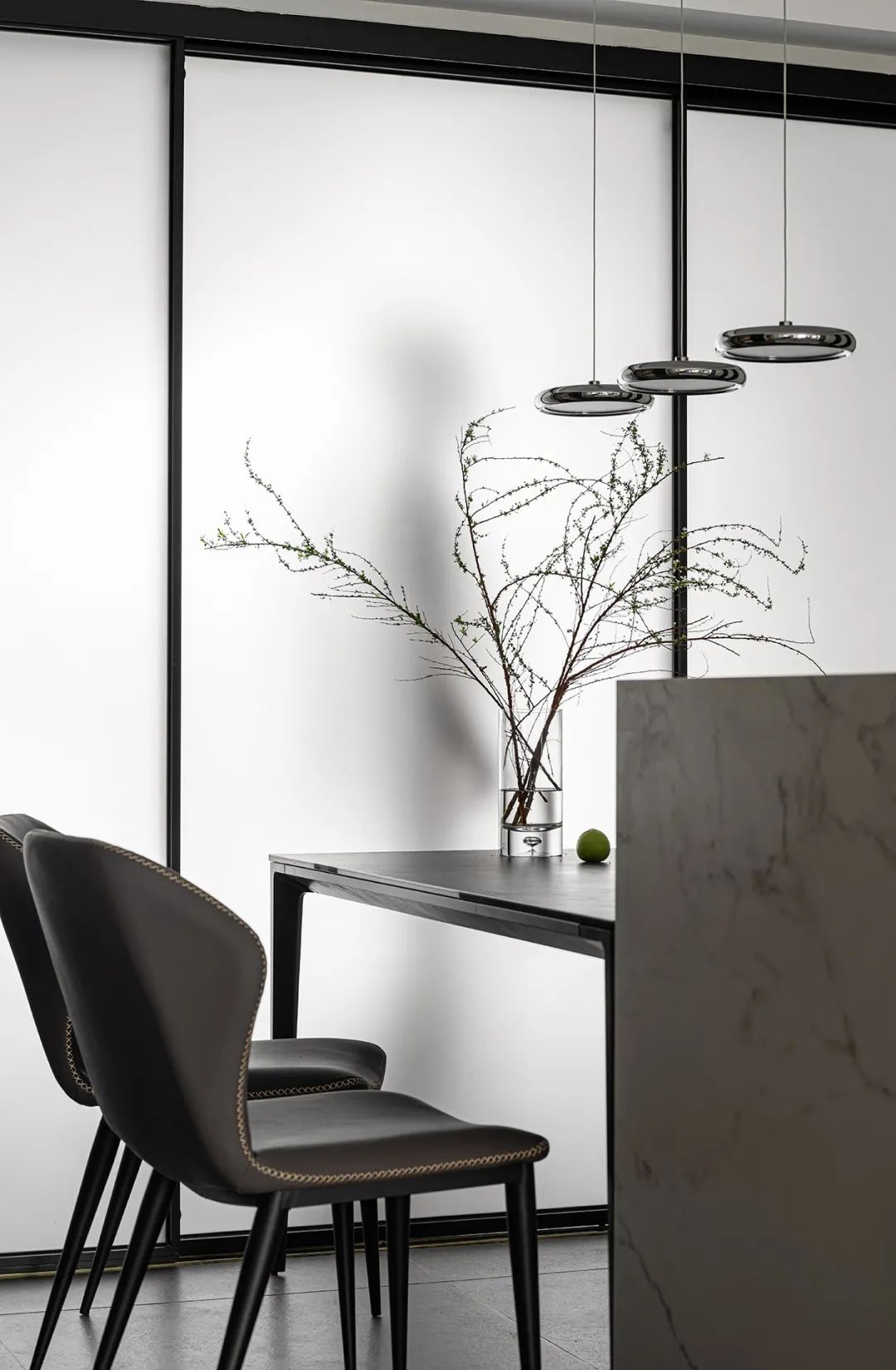 石板餐桌、咖色座椅、極具藝術感的吊燈融匯在整個餐廳設計中,增添了更具時尚感和個性感的格調,餐廳也以它獨有的空間語言延伸至每一頓餐食之中。