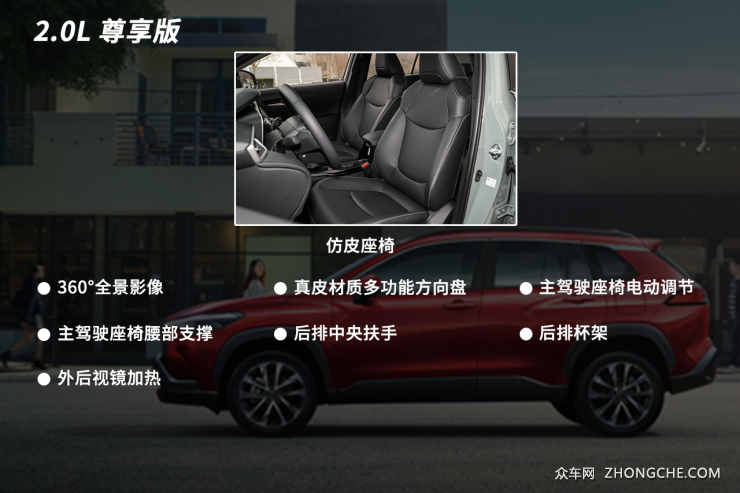 2.0L尊享版是全系次頂配,比中配貴了7000元。配置方面增加了真皮材質方向盤、仿皮座椅、主駕駛座椅電動調節,均是能夠提升舒適性的配置,適合預算比較充裕的消費者。推薦指數:★★★★