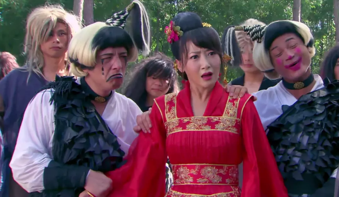 蜥蜴精和她的兩個小夥伴,一個衣服大到不行能裝進兩個他,頭飾像黑山老妖,一個像COS福娃歡歡,頭頂起火了嗎?