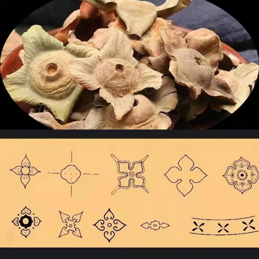 人們多喜歡把柿子樹種在房前或院中(我家的柿樹就種在院子裡),大概是取“事(柿)事(柿)如意”的吉祥寓意,這當然也不是現在才有的,在古代人們就早已賦予它美好的寓意。戰國、秦漢時期流行一種吉祥紋飾——柿蒂紋,顧名思義,這種紋飾跟柿子分作四瓣的蒂十分相似。柿蒂,從柿花開落到果實成熟,一直緊緊護託著果實,相伴相生,難分難離,這在自然界是很少的現象。對於“近取諸身,遠取諸物”的古人來講,自然是看在眼中,摹其形狀,裝飾器物用具。柿蒂紋也被賦予了象徵家族堅實牢固、傳承祥瑞的寓意。