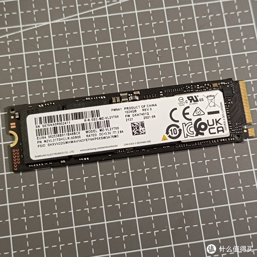 固態硬碟有點劍走偏鋒了,淘的是三星的PM9A1 1TB,980PRO的OEM款,效能毋庸置疑,用在5600G上只能在PCIe3.0上跑,屬實有點委屈,不過沒有官方保修,二手的礦渣又多,需要多多區分。