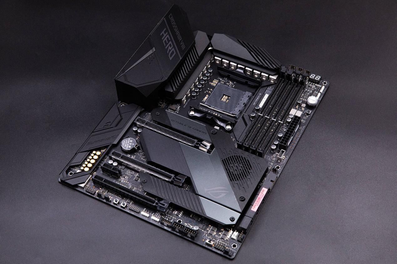 ROG CROSSHAIR VII HERO X570主機板也是我們的老朋友了。ROG C8H為標準的ATX大板,8層PCB板、14+2相豪華供電、10K日系黑金全固態電容,可以說是用料非常的紮實。供電模組部分的散熱片與熱管相連,南橋也增加了散熱風扇進行輔助散熱,溫度穩定性進一步提升。4插槽記憶體設計,經過了加固設計,最高支援雙通道128GB記憶體,可以超頻至4800MHz。配備3條PCIe 4.0高速插槽,支援顯示卡雙路SLI或三路CF交火。不僅延續了ROG SupremeFX電競音效技術,同樣還支援802.11ax無線傳輸協議。