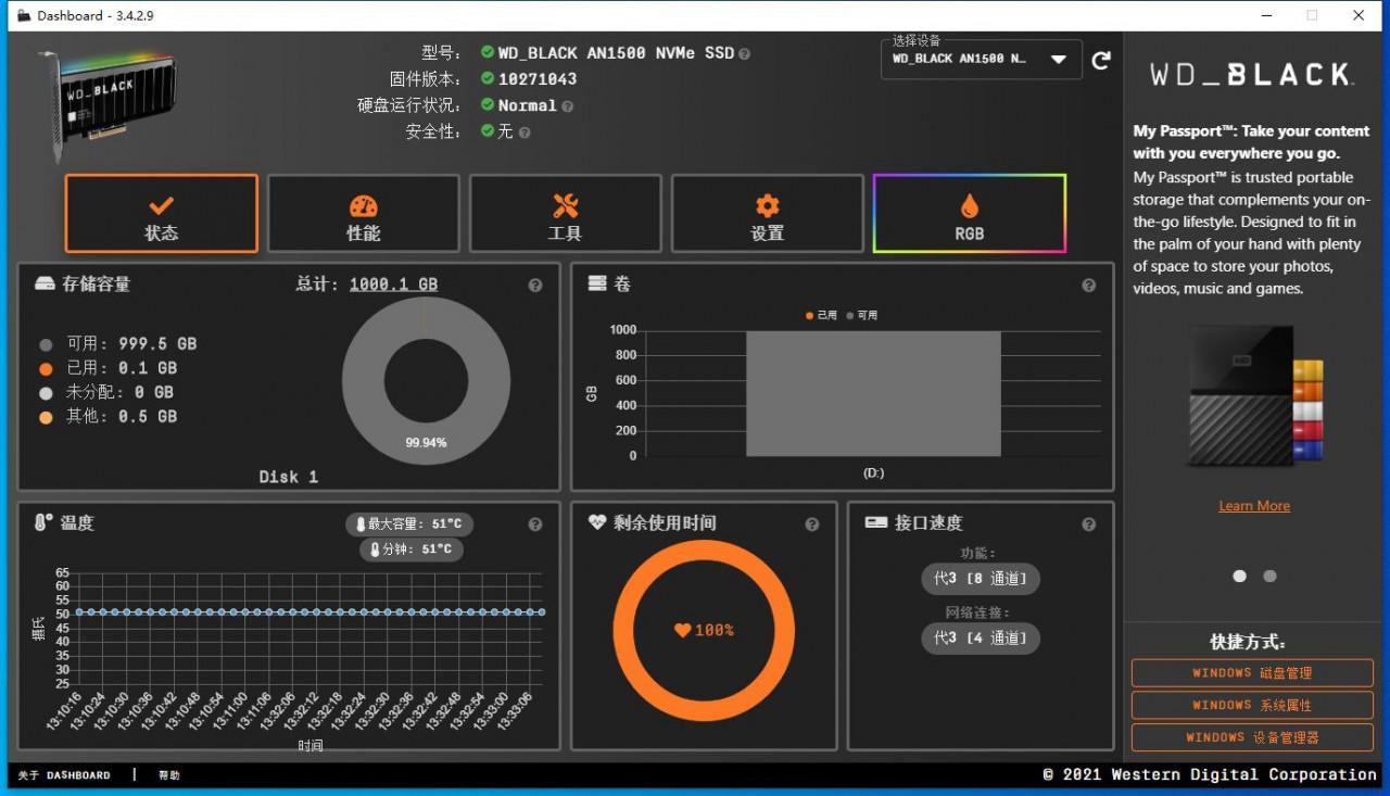 WD_BLACK AN1500 NVMe擴充套件卡型SSD易安裝、佔用空間小,充分利用主機板上閒置的PCIe插槽就可以完成體驗上的升級,非常的省心。它有著豐富的RGB效果,有著不錯的靜音表現,當然更重要的還是有著媲美PCIe 4.0 SSD的讀寫效能,不論是遊戲場景還是影音創作場景都會給到我們不小的助益。WD_BLACK提供的長達5年的質保當然也是它的加分項,缺乏安全感的小夥伴也可以放心地把你寶貴的資料存放在裡面。總而言之,有需求的小夥伴不妨考慮入手,尤其是平臺還停留在PCIe3.0並且苦惱於遊戲載入速度的朋友們。
