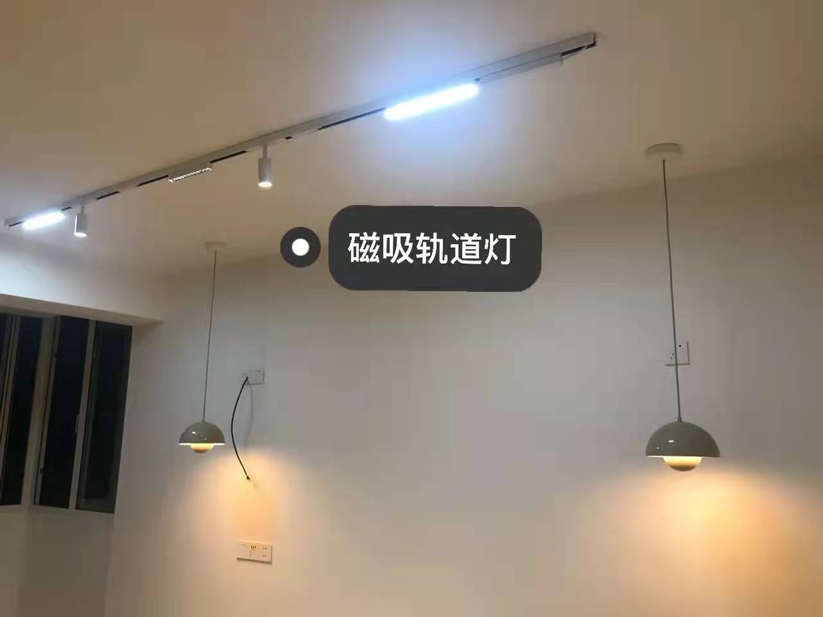 餐廳選的軌道射燈,可以調整燈的角度,照牆照桌子都行,十分方便。