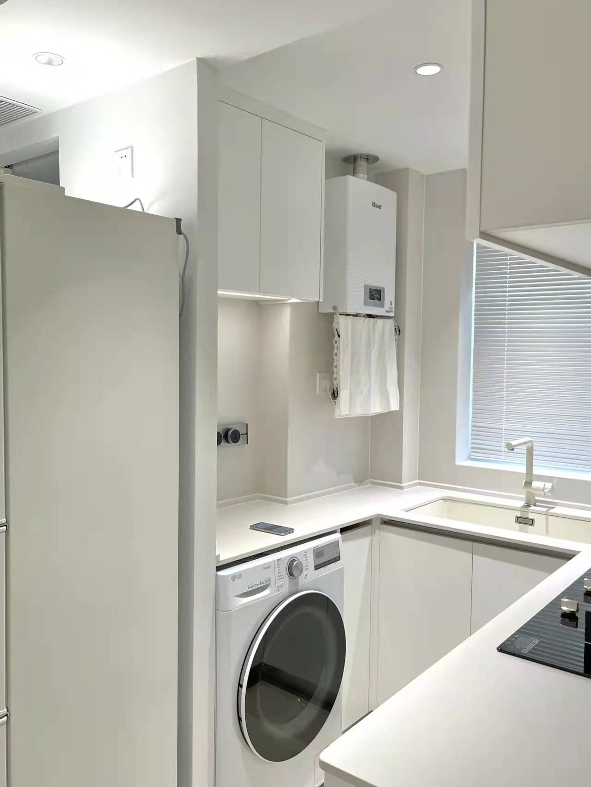 廚房安的百葉沉浸式拉簾,跟整體的裝修風格搭配起來相得益彰,簡潔又清新。