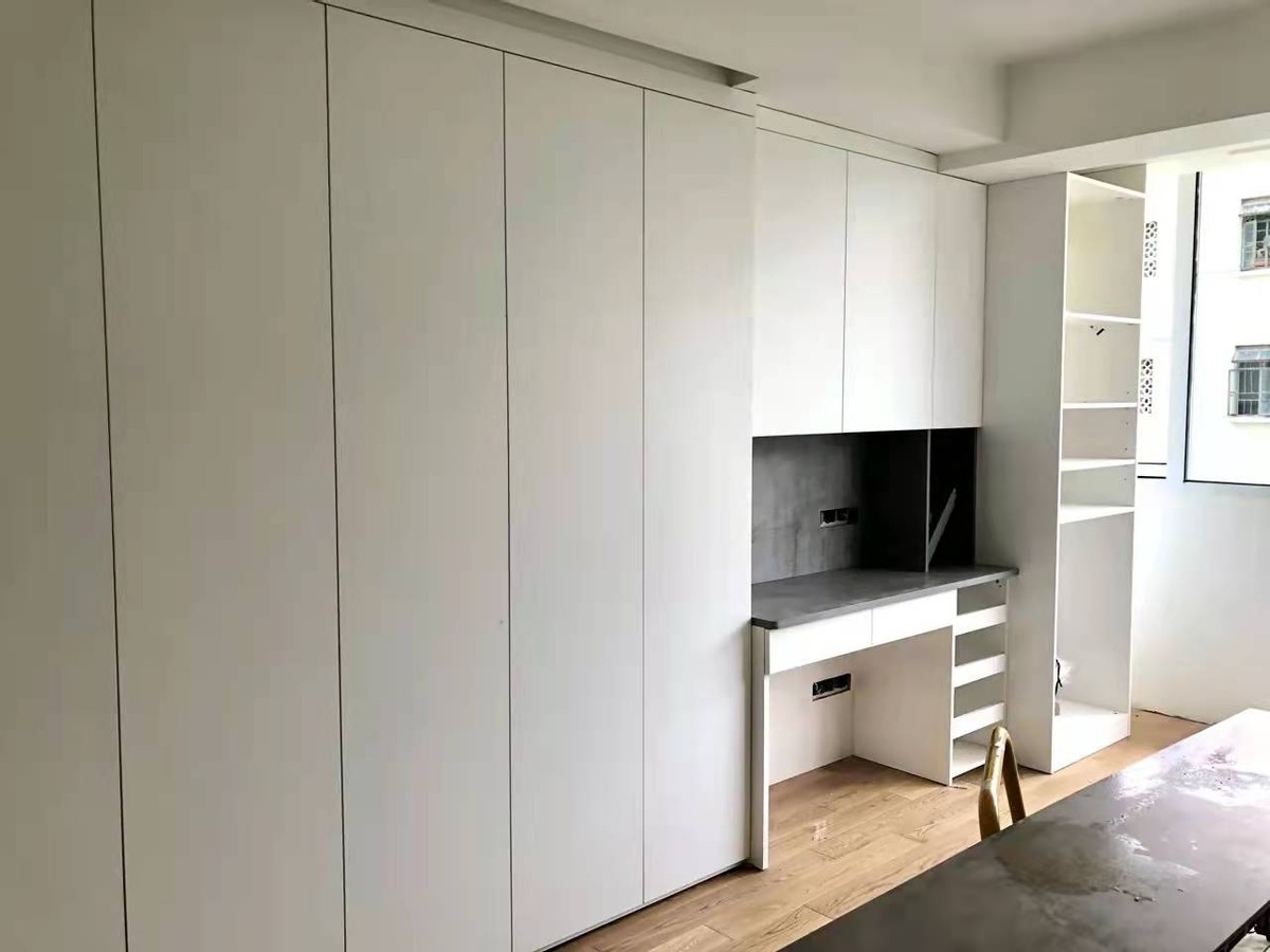 地板鋪完之後櫃子就可以進家了,小薇比較喜歡簡約乾淨的風格,所以櫃子的顏色也是選的白色。