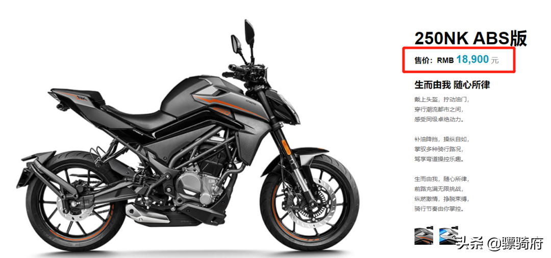 這款車同樣是以250NK的發動機,車架及部分通用零部件攢成,僅售18980元。