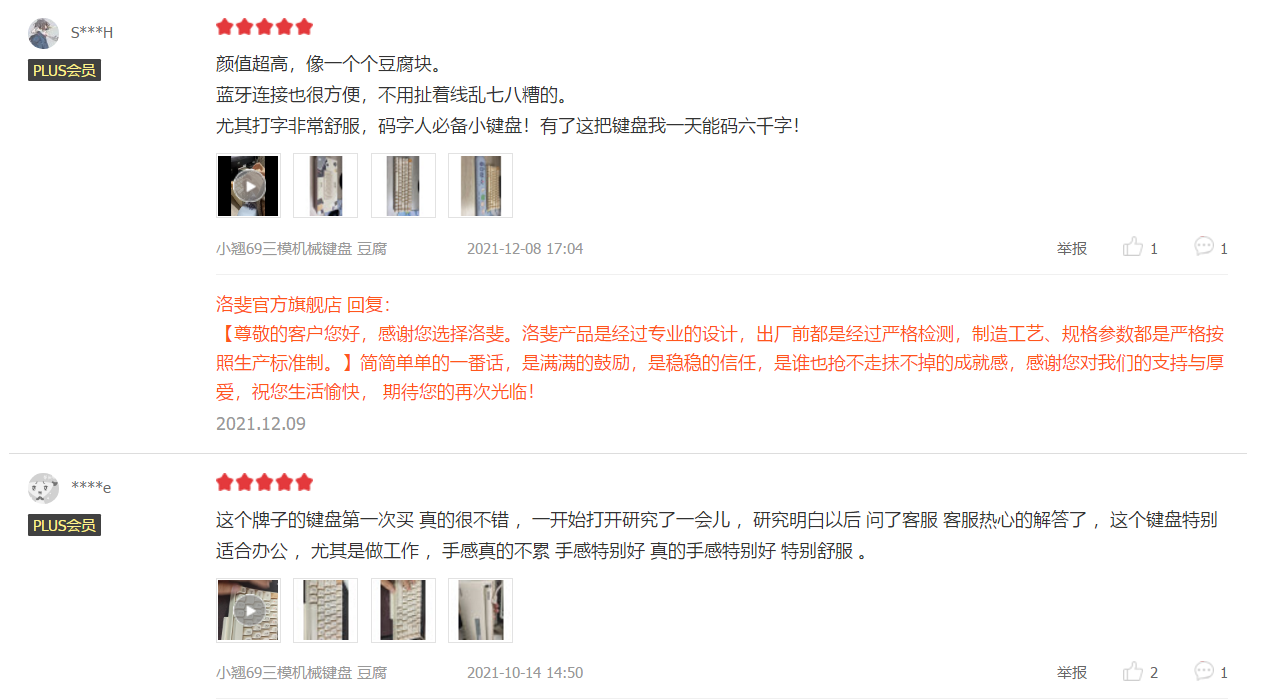 如果預算有限,還可以考慮一下洛斐小翹101鍵無線藍芽鍵盤機械鍵盤,目前在某東的好評率達到了95%,手感、顏值以及體驗感都得到了不少使用者的認可。在外觀方面,洛斐小翹採用了創新SA PBT復古球帽設計,顏值相當出色,搭配紅軸軸體,按壓力度和敲擊感都很不錯,這一點是被眾多使用者點讚的。