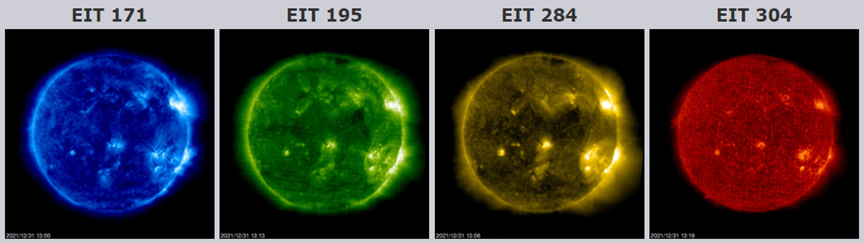太陽極紫外影象,2021年12月31日,SOHO拍攝。圖源NASA