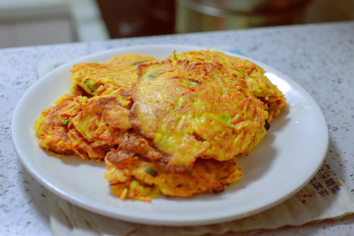 食材:胡蘿蔔、雞蛋、麵粉、鹽、味精、食用油。